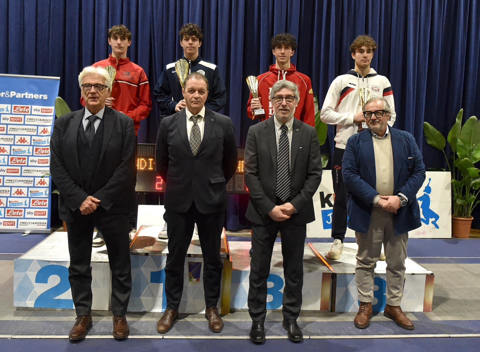 Nella prova della spada maschile, che ha visto al via 277 partecipanti, successo per Federico Bondi. Lo spadista della Scherma Treviso M° Ettore Geslao in finale si è imposto, con il punteggio di 15-9 su Federico Varone del Pentamodena (secondo classificato). Medaglia di bronzo per Riccardo Magni del Circolo Schermistico Forlivese ed Elia Rizzolo del Circolo Scherma Castelfranco Veneto. Quinto posto per Edoardo Strobbia del Circolo Scherma Giuseppe Delfino Ivrea, sesto Niccolò Intartaglia della Giannone Caserta, settimo Emanuele Mancini e ottavo Marco Ferraris entrambi dell’Associazione Scherma Pro Vercelli.